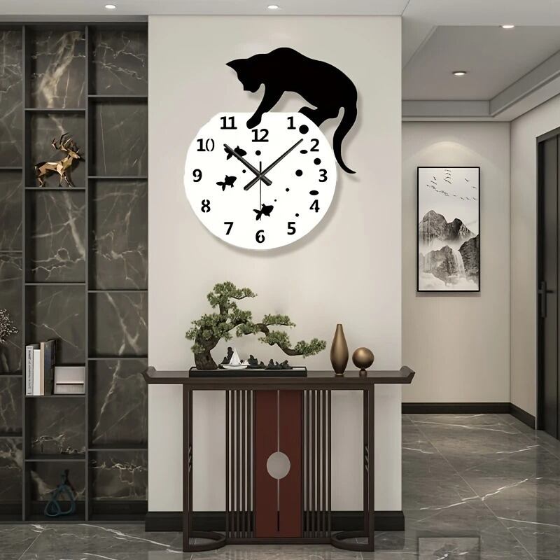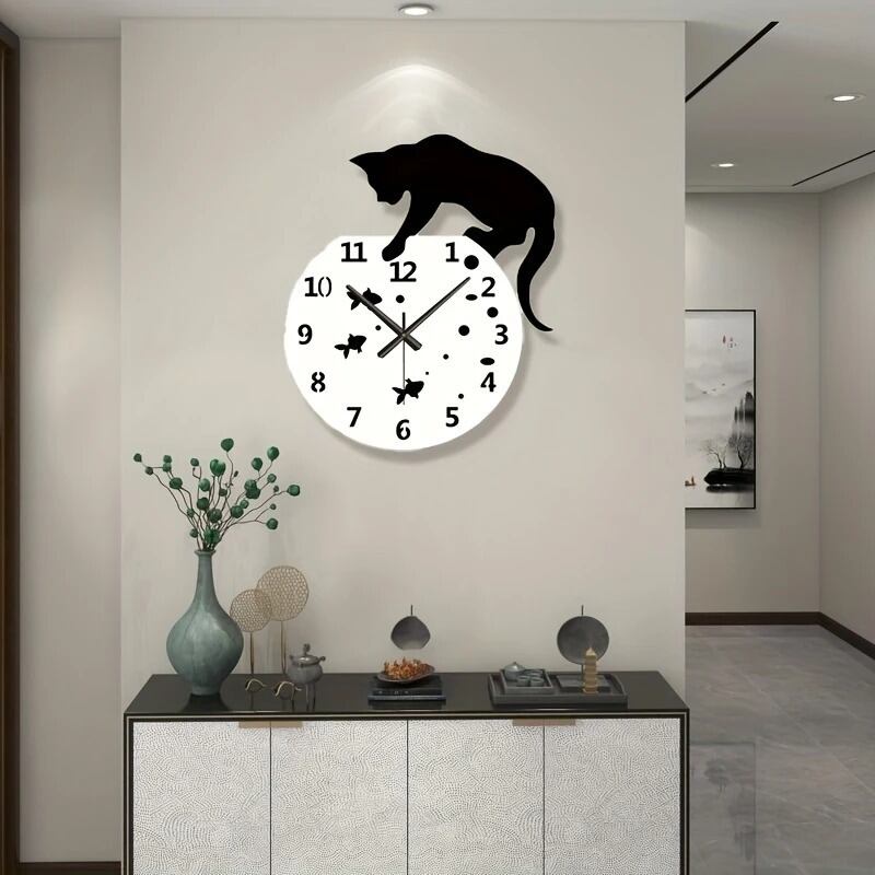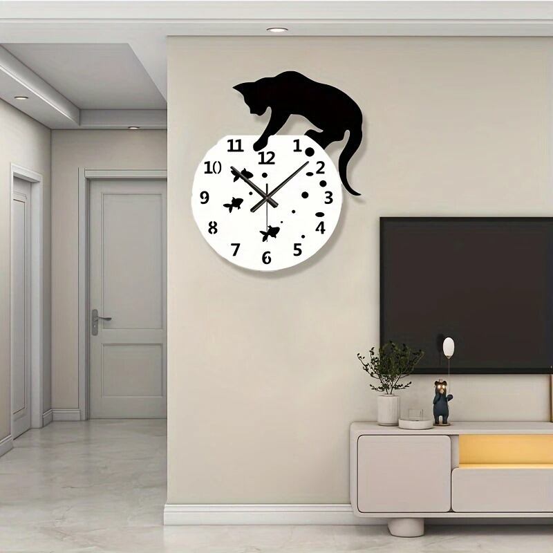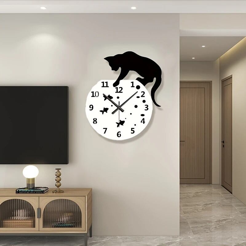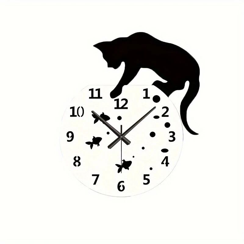 壁掛け時計 猫 かわいい モノトーン 金魚 癒し 静音 白黒 おしゃれ インテリア 北欧 黒猫 ウォールクロック 静か リビング 寝室 子供部屋 部屋飾り 新生活 電池式 25×30cm | Calm+(カームプラス) - 北欧風ナチュラルインテリア・モダン家具専門店