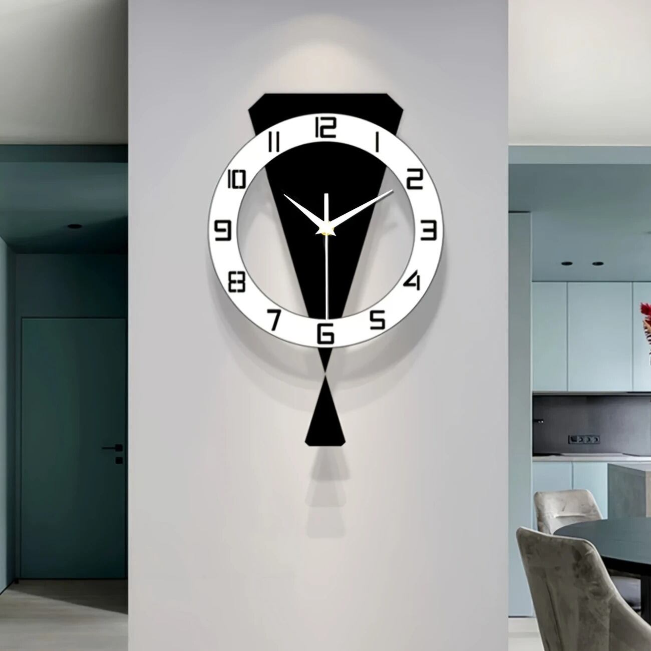 壁掛け時計 振り子時計 モノトーン モダン 三角 クール スタイリッシュ 静音 大型 おしゃれ かわいい インテリア 北欧 白黒 大きい 静か デザイン リビング 寝室 部屋飾り ウォールクロック 新生活 電池式 30×45cm | Calm+(カームプラス) - 北欧風ナチュラルインテリア・モダン家具専門店