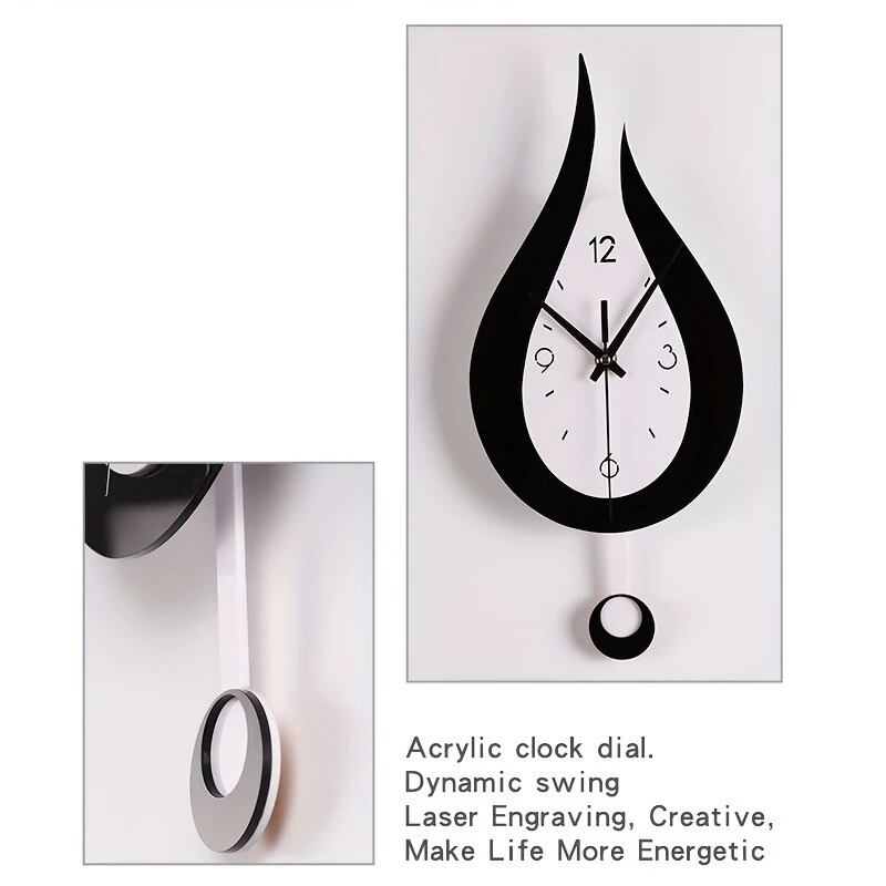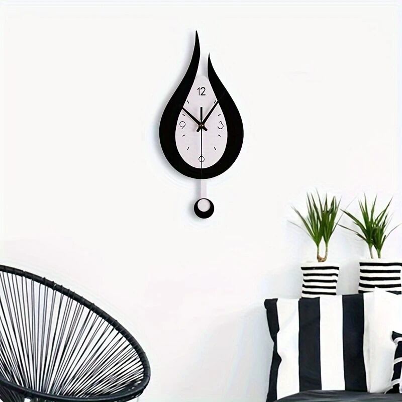 壁掛け時計 振り子時計 しずく 水玉 モノトーン モダン 静音 しずく型 おしゃれ かわいい インテリア 北欧 白黒 静か デザイン リビング 寝室 部屋飾り ウォールクロック 新生活 電池式 17×38cm | Calm+(カームプラス) - 北欧風ナチュラルインテリア・モダン家具専門店