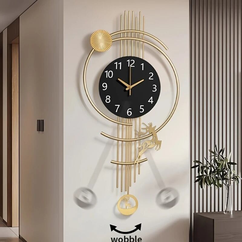 壁掛け時計 トナカイ ゴールド ブラック ラグジュアリー 高級感 振り子時計 静音 クリスマス おしゃれ かわいい インテリア 北欧 大型 金属製 モダン 綺麗 大きい 静か デザイン リビング 寝室 部屋飾り ウォールクロック 新生活 電池式 38×82cm | Calm+(カームプラス) - 北欧風ナチュラルインテリア・モダン家具専門店
