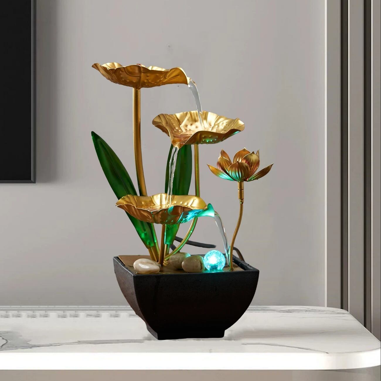 置物 オブジェ ミニ噴水 卓上 ライト 流水 癒し ランプ おしゃれ かわいい インテリア 北欧 水が流れる 滝 光る 色が変わる スパ 蓮の花 室内 小型 水循環 部屋飾り 小物 金属製 玄関 リビング 寝室 プレゼント 贈り物 ギフト USB給電式 | Calm+(カームプラス) - 北欧風ナチュラルインテリア・モダン家具専門店