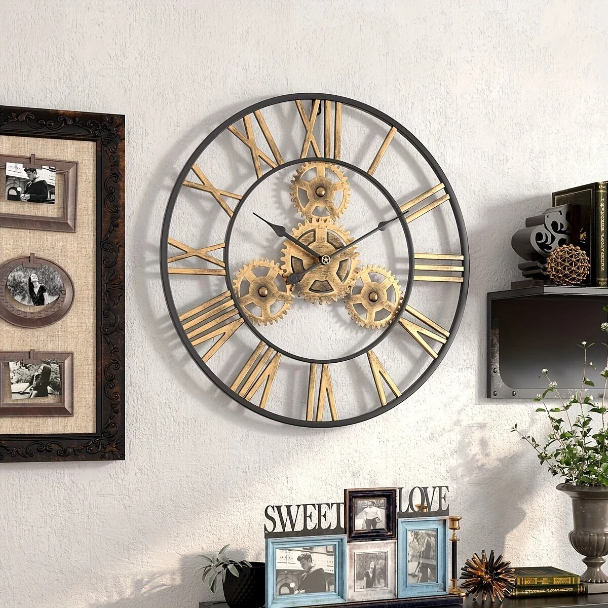 この壁掛け時計は、スチームパンクの歯車デザインが特徴で、どんなインテリアにもマッチします。電池式で手軽に設置でき、静音設計なのでどの部屋でも快適にお使いいただけます。注意点として、電池は別売りですので、購入時にご用意ください。