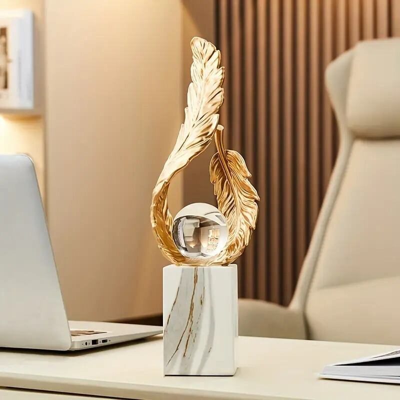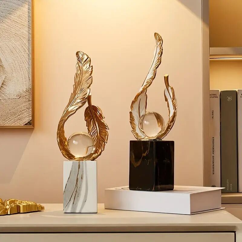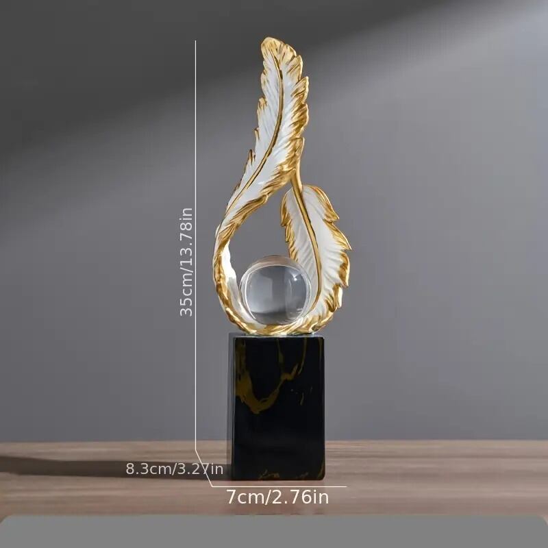羽根の優雅さを纏ったモダンアートオブジェ。