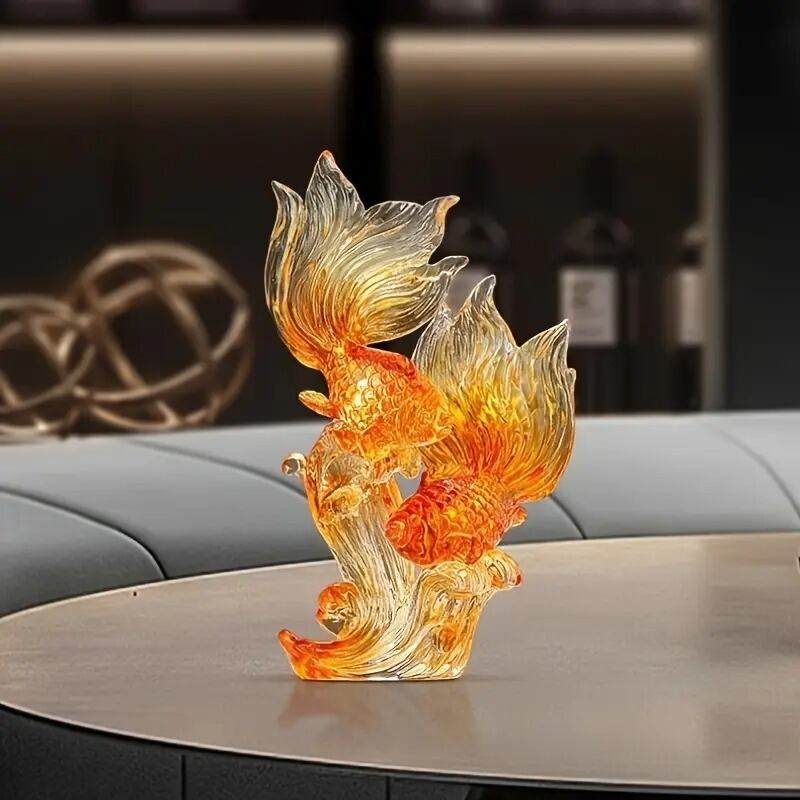 透明な美しさが魅力の金魚オブジェ。部屋に飾るだけで、まるで水中にいるかのような癒しの空間を演出します。リアルな彫刻が、見る人の心を和ませます。玄関やリビング、寝室、書斎、どんな場所にもぴったりのインテリアです。