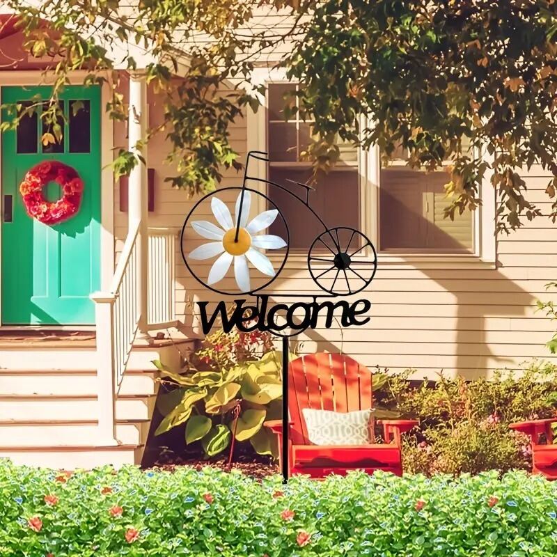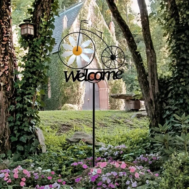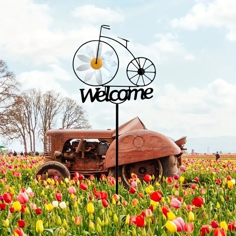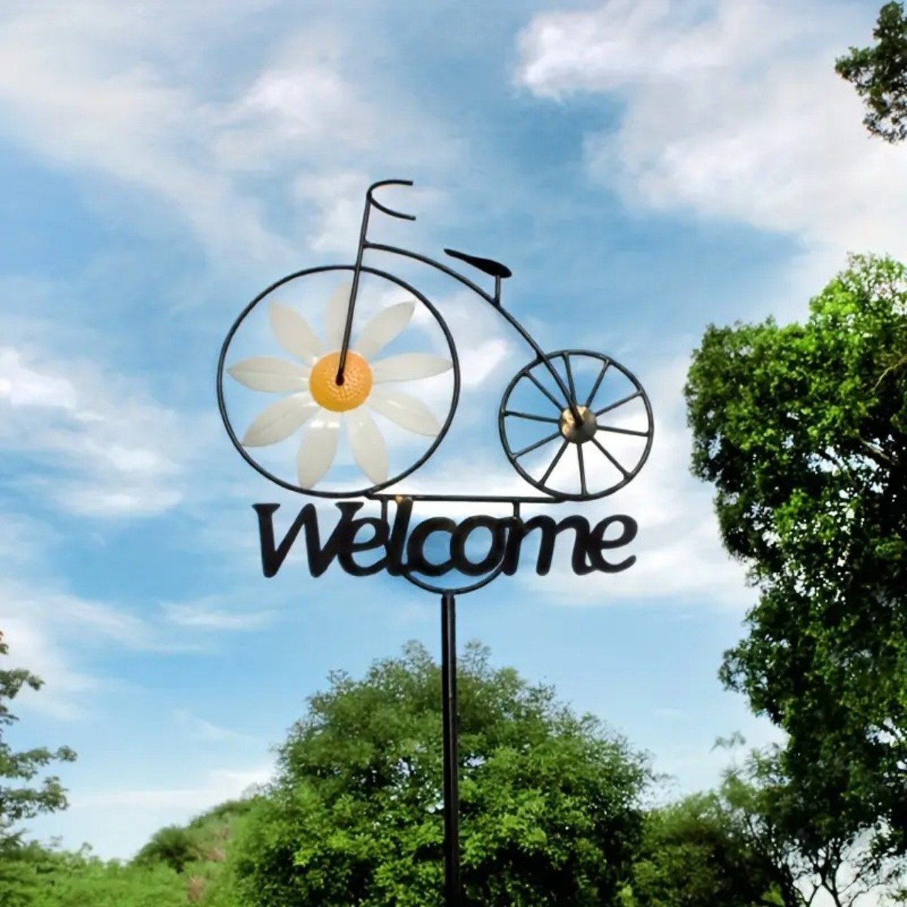 風に揺れる美しいデザインで、庭を彩る風車。おしゃれな自転車風のウェルカムボードとしても大活躍。金属製のしっかりとした作りで、長くお楽しみいただけます。庭や玄関先に設置するだけで、訪れる人々を優しく迎え入れます。