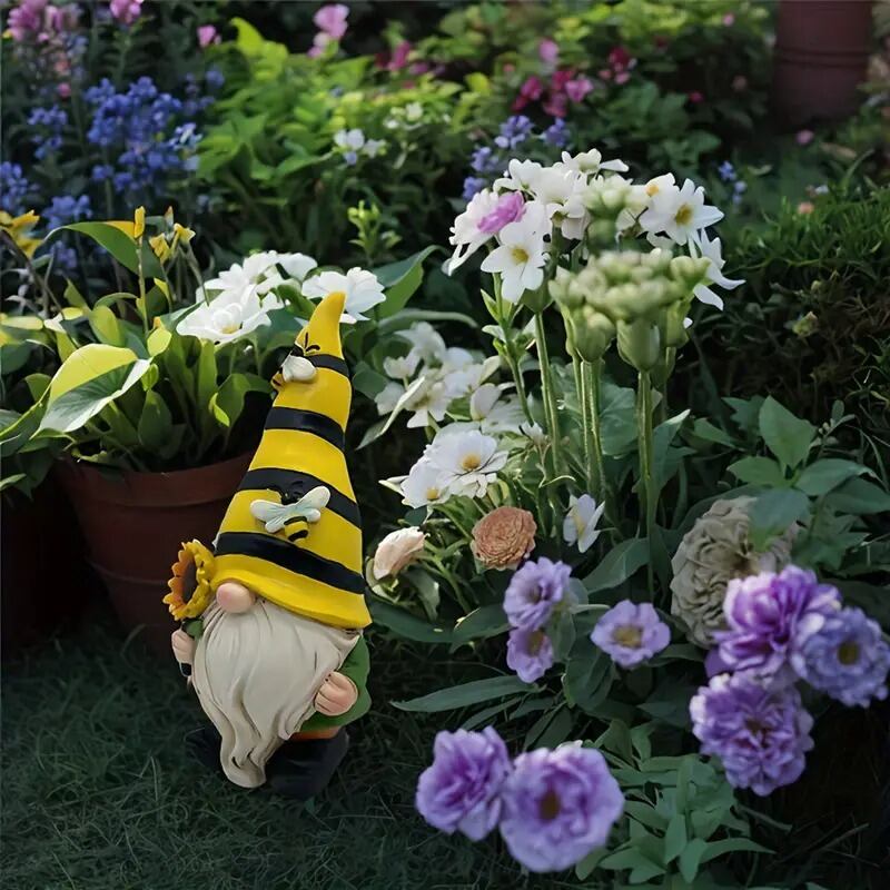 ガーデンオブジェ 小人 ノーム ドワーフ 帽子 ハチミツ ひまわり 置物 屋外 可愛い 選べる おしゃれ かわいい インテリア 北欧 ガーデニング 庭 花壇 ミツバチ ユニーク 樹脂 12×24×9.5cm | Calm+(カームプラス) - 北欧風ナチュラルインテリア・モダン家具専門店