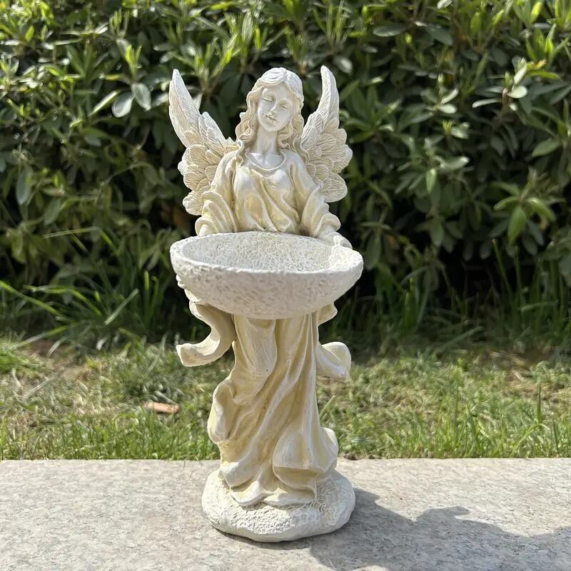 心を癒す庭のアクセント、エレガントな天使像のバードフィーダー。