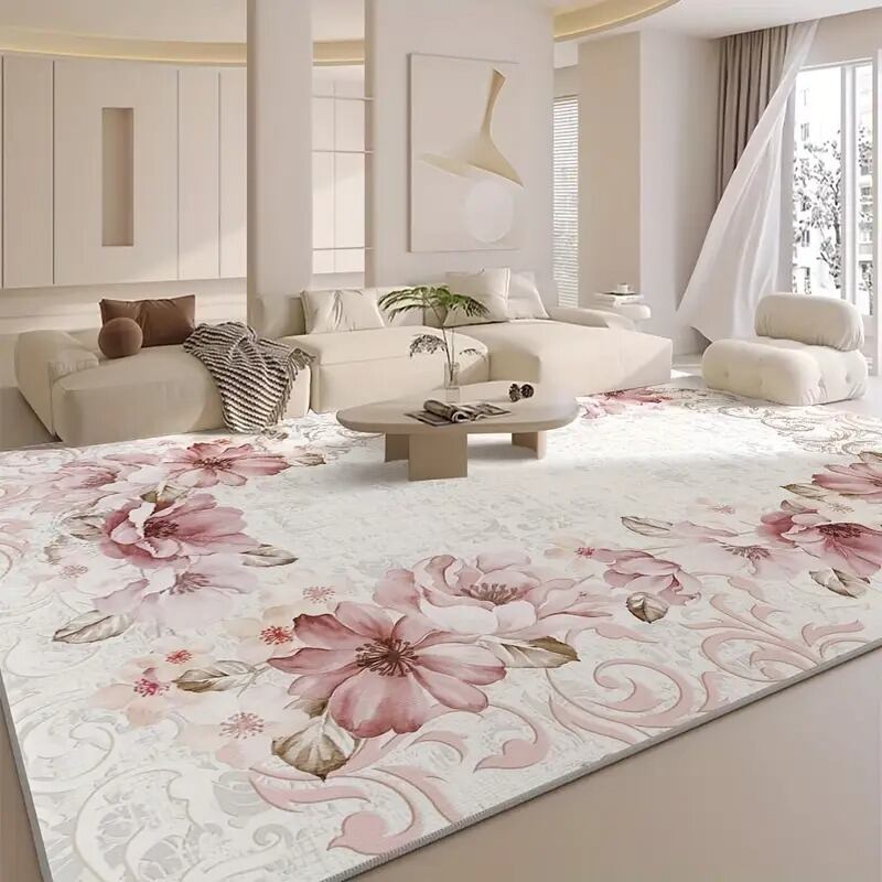 このラグは、リビングを華やかに彩る花柄デザインが魅力です。