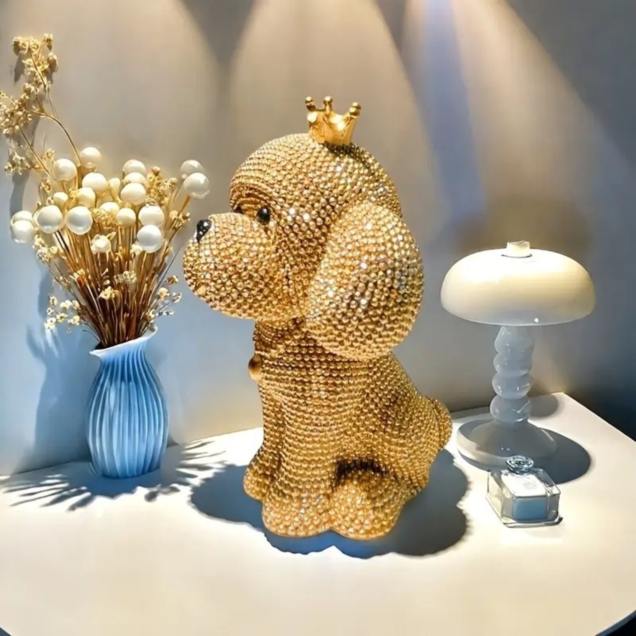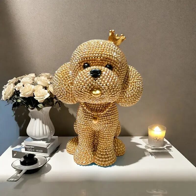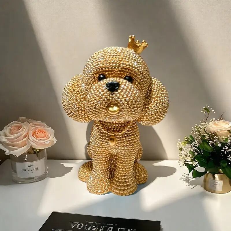 愛らしさとゴージャスさを兼ね備えた、きらきら輝くプードルの置物。
