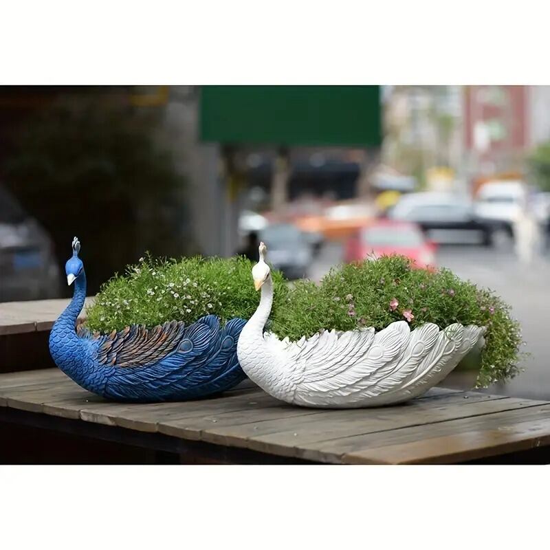 プランター 鉢 植木鉢 孔雀 ガーデニング フラワーポット 美しい おしゃれ かわいい インテリア 北欧 エレガント 鳥 リアル 植物 屋外 庭 ブルー ホワイト 30×17×16cm | Calm+(カームプラス) - 北欧風ナチュラルインテリア・モダン家具専門店