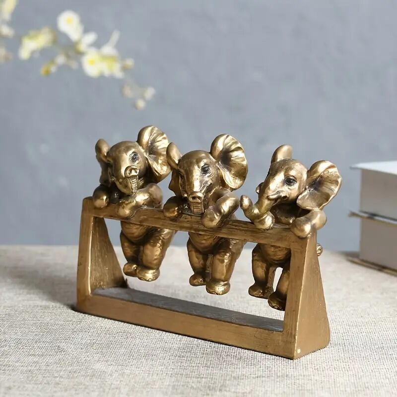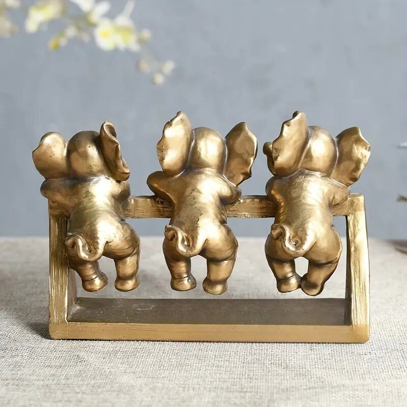 置物 オブジェ 象 ぞう インテリア かわいい おしゃれ 北欧 ペットアート レジン オーナメント 子供部屋 リビング 模造銅 アンティーク ギフト プレゼント ホリデー デコレーション 小物 雑貨 玄関 卓上 置き物 動物 3匹セット ナチュラル | Calm+(カームプラス) - 北欧風ナチュラルインテリア・モダン家具専門店