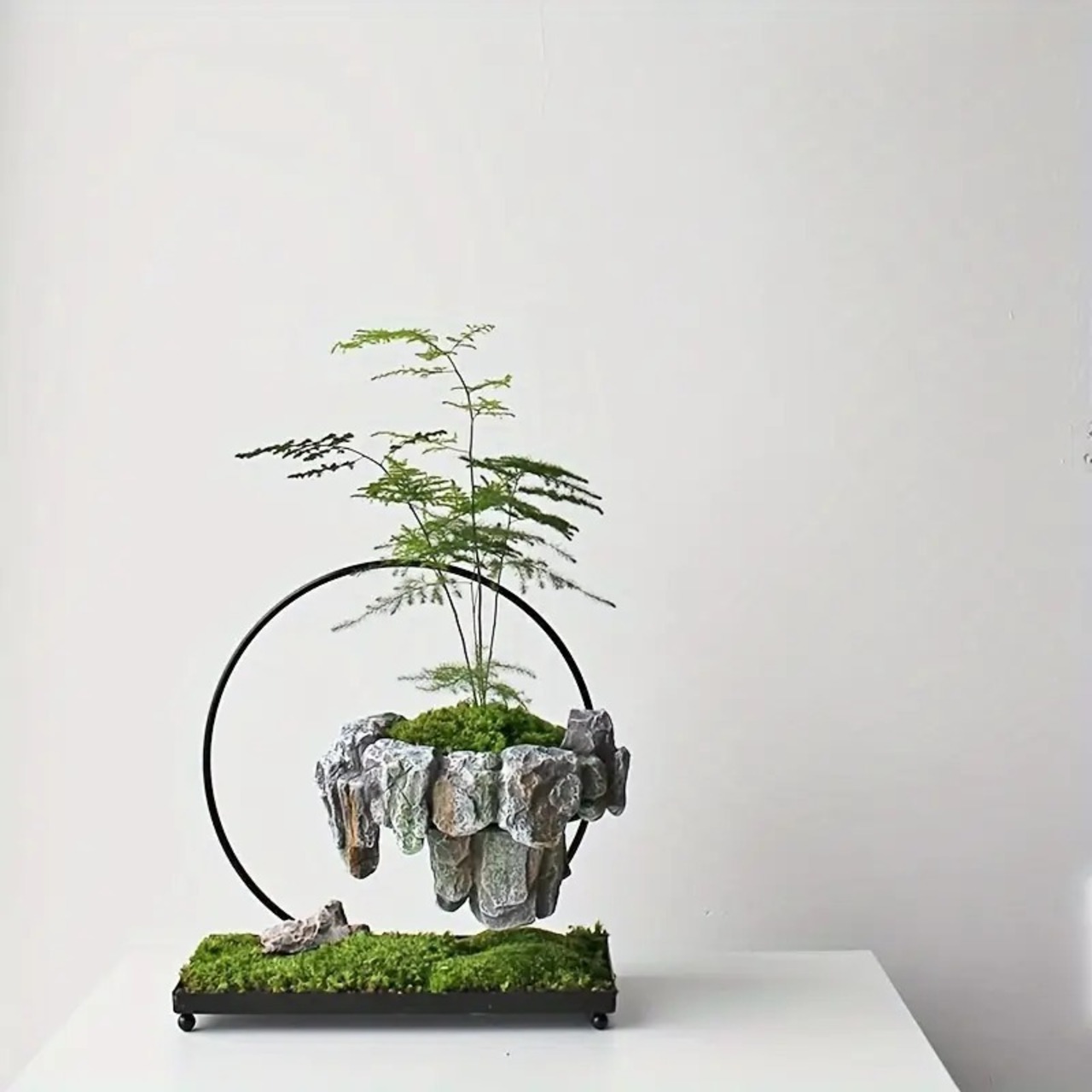 金属素材の盆栽ポットとしても使えるこのオブジェは、フラワーポットや鉢置きとしても活躍。