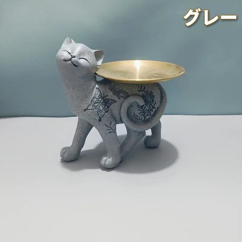 置物 オブジェ 招き猫 デザイントレイ付き 小物置き レジントレイ おしゃれ かわいい インテリア 北欧 アートオブジェ キャッシャーカウンター 店舗 風水猫 金運 縁起 開運 デザイン雑貨 アンティーク調 ねこ 猫グッズ アクセサリー収納 置き物 飾り物 | Calm+(カームプラス) - 北欧風ナチュラルインテリア・モダン家具専門店