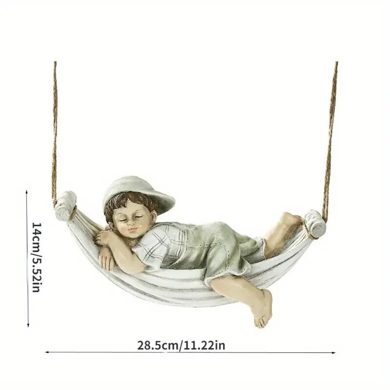 ガーデンオブジェ 置物 人物像 男の子 可愛い 眠る姿 おしゃれ かわいい インテリア 北欧 ハンモック 吊り下げ ハンギング 屋外 庭 テラス ガーデニング 木 リアル 彫刻 飾り 28.5×14cm | Calm+(カームプラス) - 北欧風ナチュラルインテリア・モダン家具専門店
