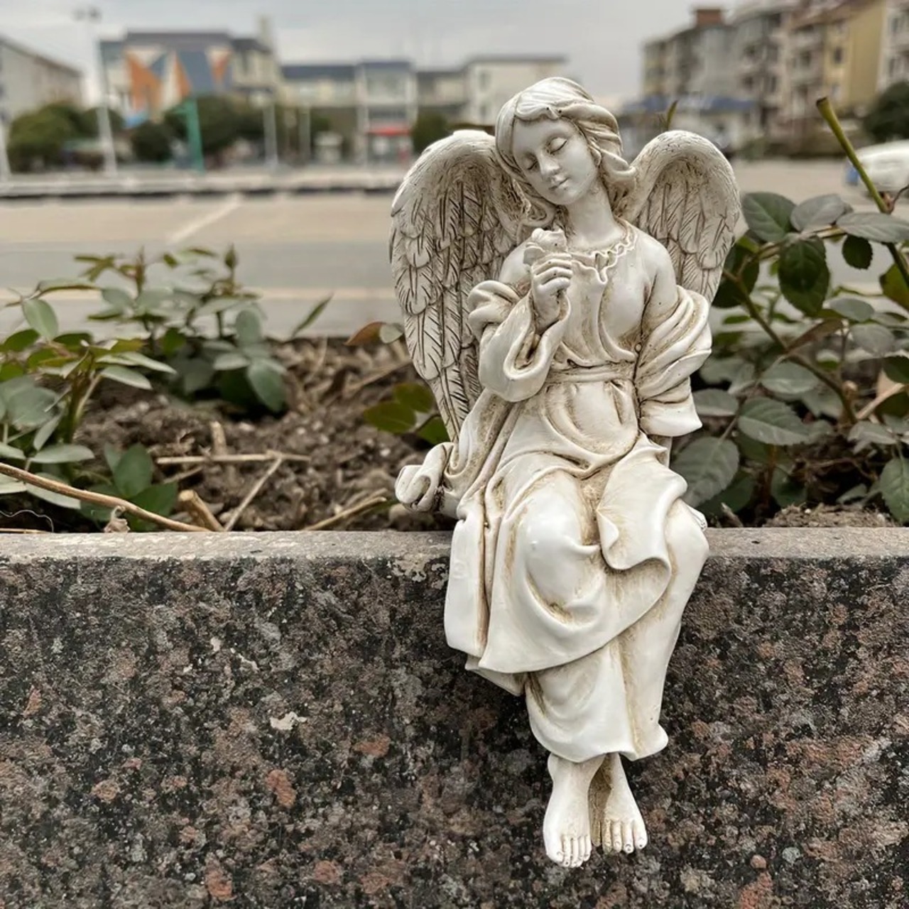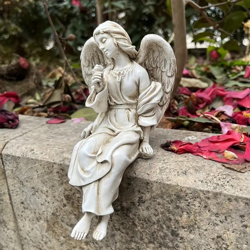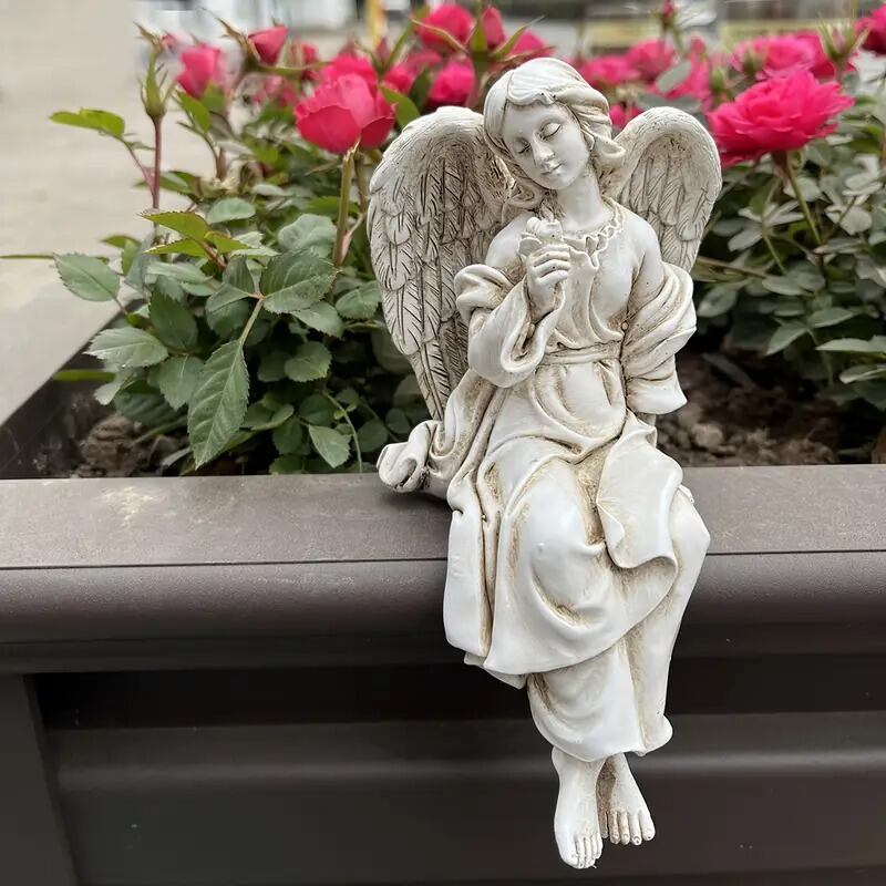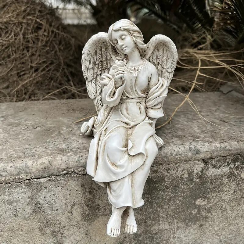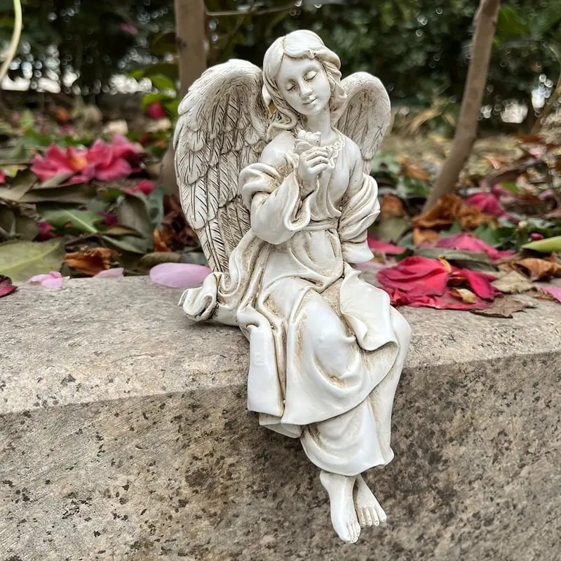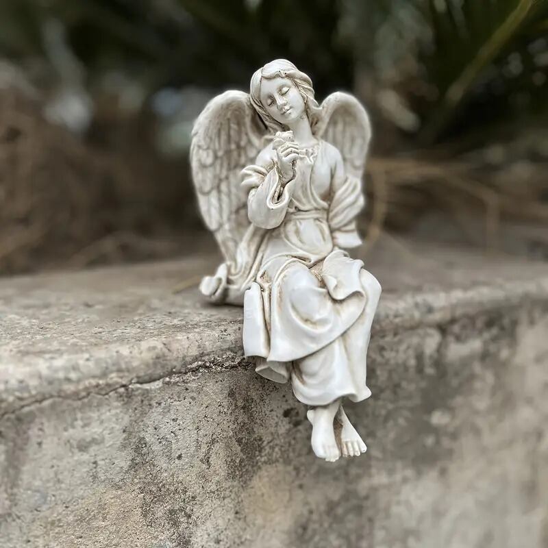 ガーデンオブジェ 置物 天使像 彫刻 石像風 座る おしゃれ かわいい インテリア 北欧 段差 屋外 庭 ガーデニング 花壇 飾り 美しい エレガント ファンタジー 8.5×16cm | Calm+(カームプラス) - 北欧風ナチュラルインテリア・モダン家具専門店