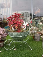 プランター 鉢 植木鉢 フラワーポット ヴィンテージ風 ガーデニング 荷車デザイン おしゃれ かわいい インテリア 北欧 金属製 植物 花 寄せ植え 屋外 庭 ガーデンオブジェ ホワイト グリーン 44.2×32cm | Calm+(カームプラス) - 北欧風ナチュラルインテリア・モダン家具専門店