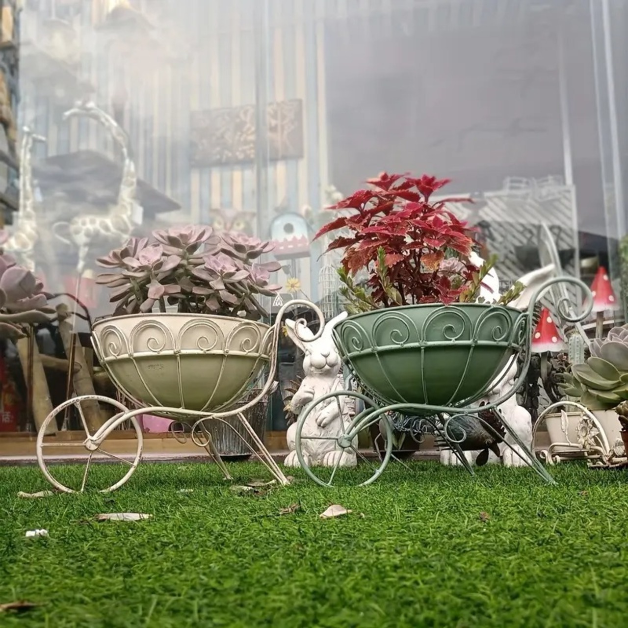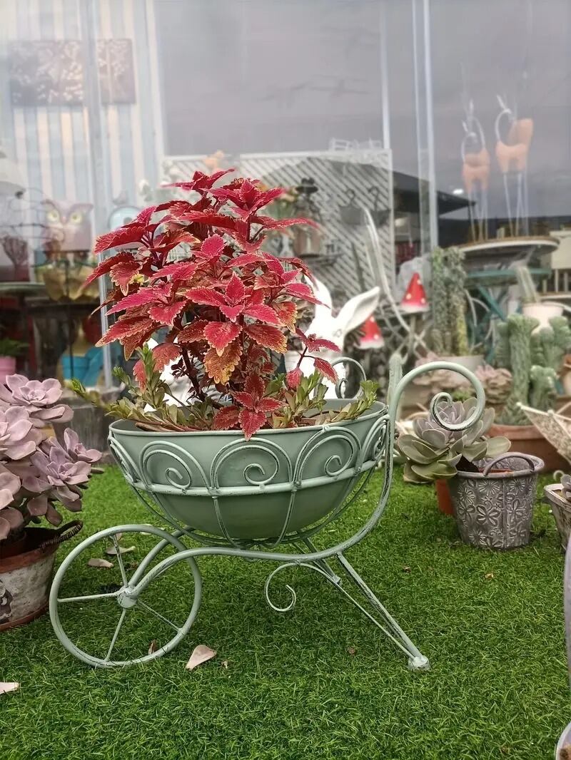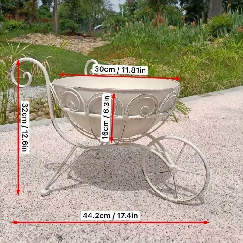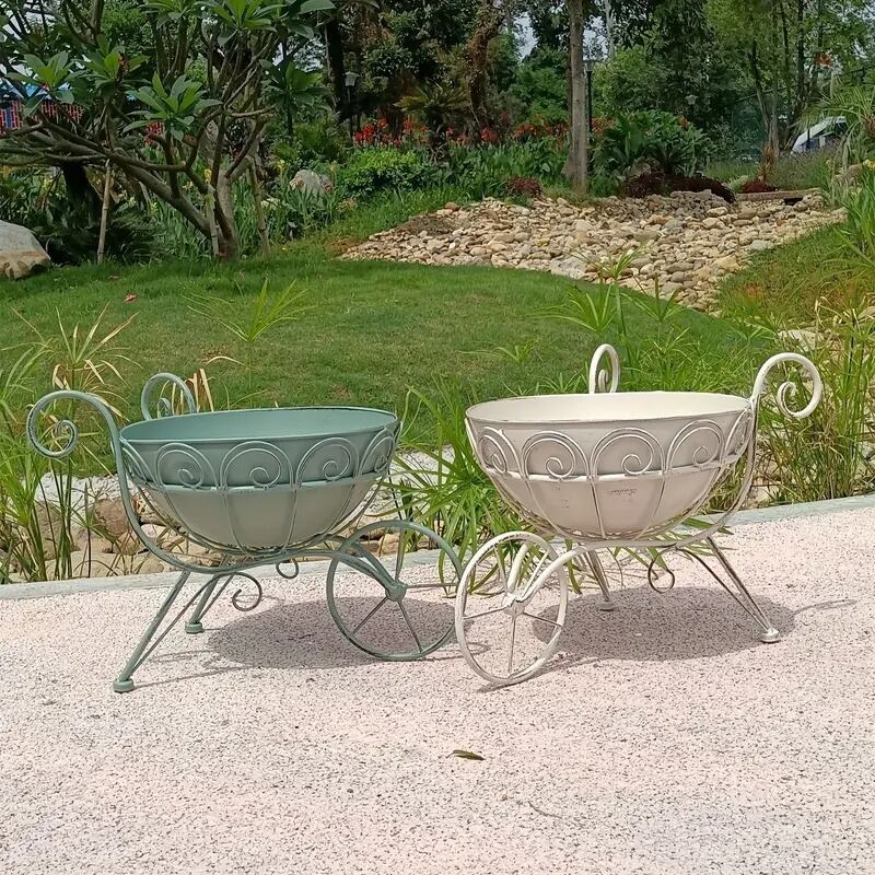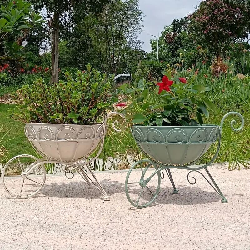 ヴィンテージ風の荷車デザインが魅力の金属製プランターで、庭に新しい風を吹き込みませんか。