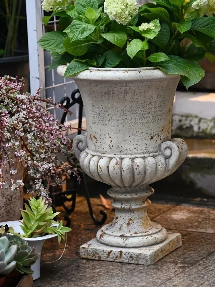 このプランターは、どんな空間にもクラシックな魅力を加えるヴィンテージスタイルの植木鉢です。