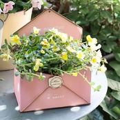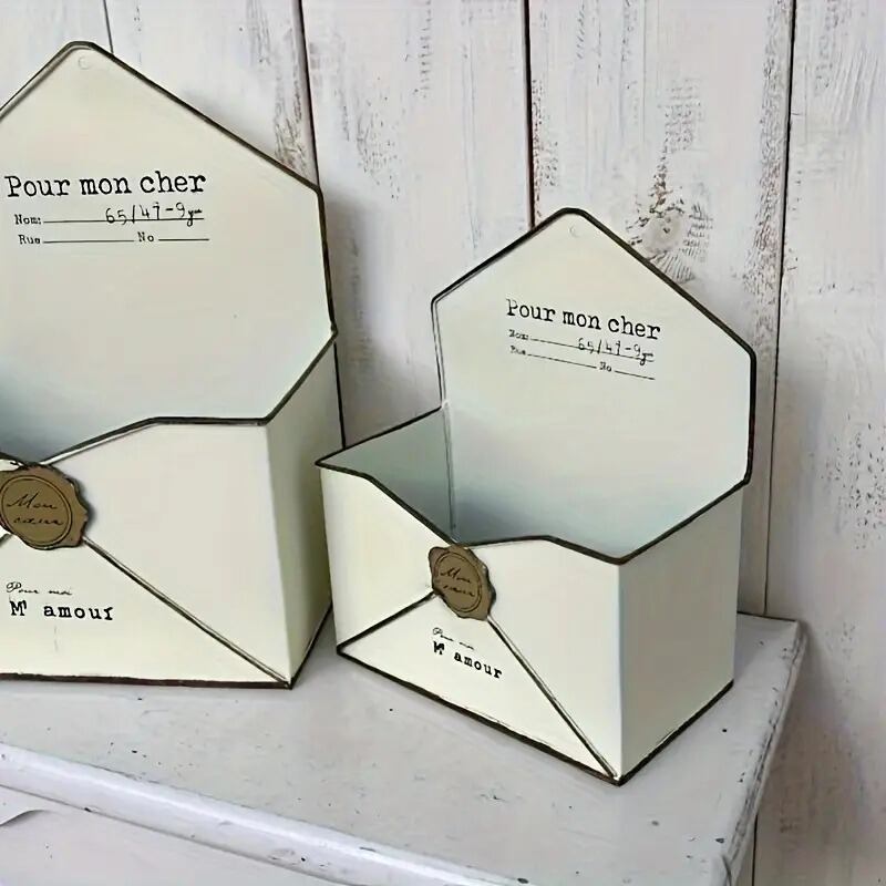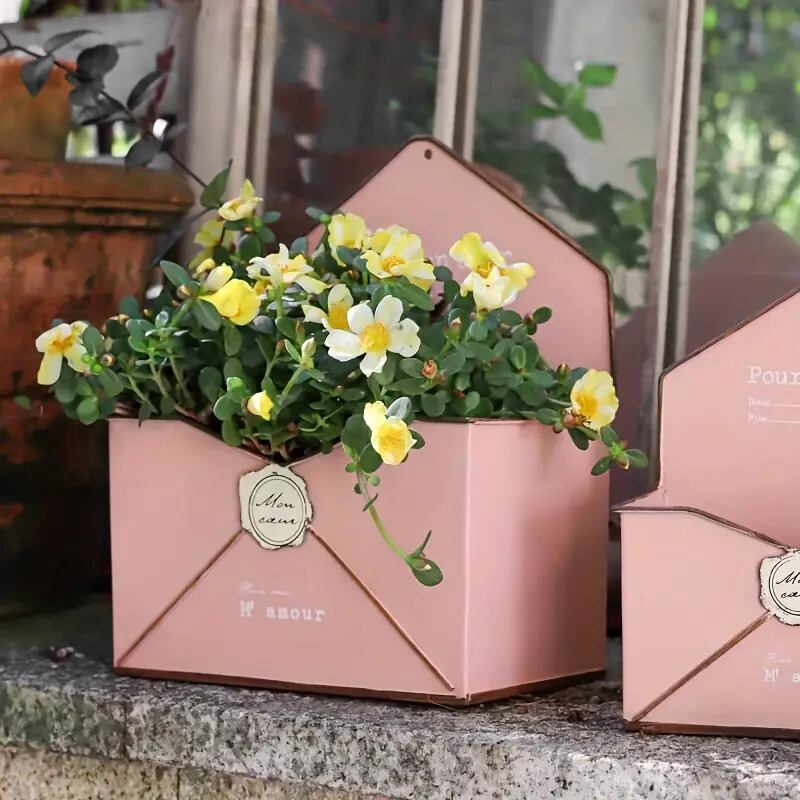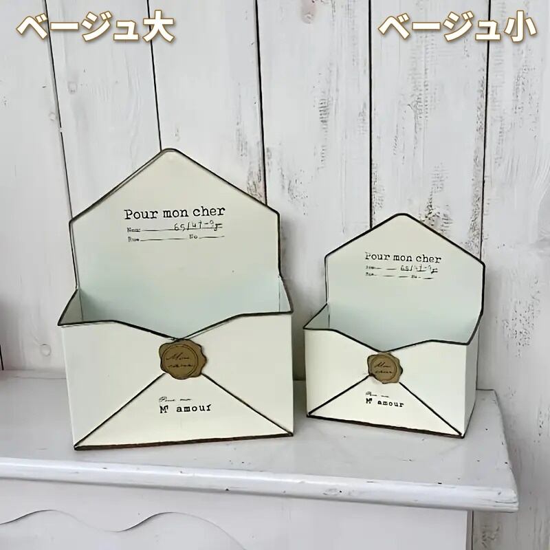 このプランターは、エンベロープデザインが特徴のアンティーク風ガーデニング雑貨です。