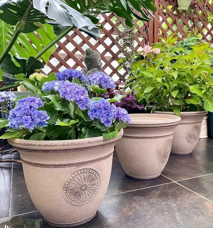 プランター 鉢 クイーンシリーズ 大径 ラウンド おしゃれ かわいい インテリア 北欧 フラワーポット ヴィンテージ風 マットストーン調 エンボス 加工 UVカット パティオ ガーデン テラス 装飾 高級感 植木鉢 ナチュラル フレンチスタイル | Calm+(カームプラス) - 北欧風ナチュラルインテリア・モダン家具専門店