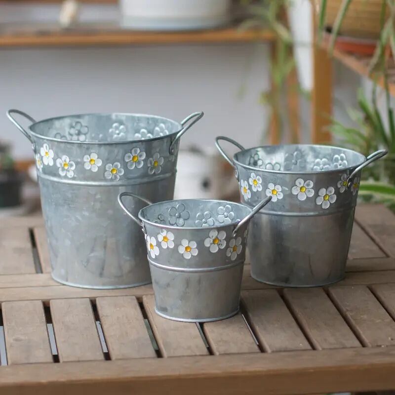 プランター 鉢 3点セット バケツ 花瓶 レトロ おしゃれ かわいい インテリア 北欧 ガーデン バルコニー 装飾 屋外 フラワーポット 鉄製ポット セット ガーデンインテリア アンティーク調 ナチュラルデコレーション 庭 ベランダ 観葉植物 植木鉢 | Calm+(カームプラス) - 北欧風ナチュラルインテリア・モダン家具専門店
