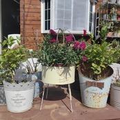 お庭にヴィンテージの風を、チェア型メタルプランターで。