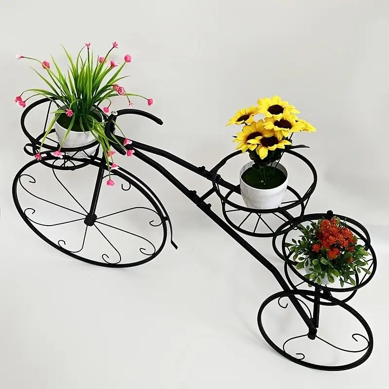 金属製のしっかりとした作りで、観葉植物や盆栽を優雅に支えます。