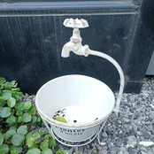 アメリカンレトロの風を感じる、蛇口デザインのバレルフラワーポット。