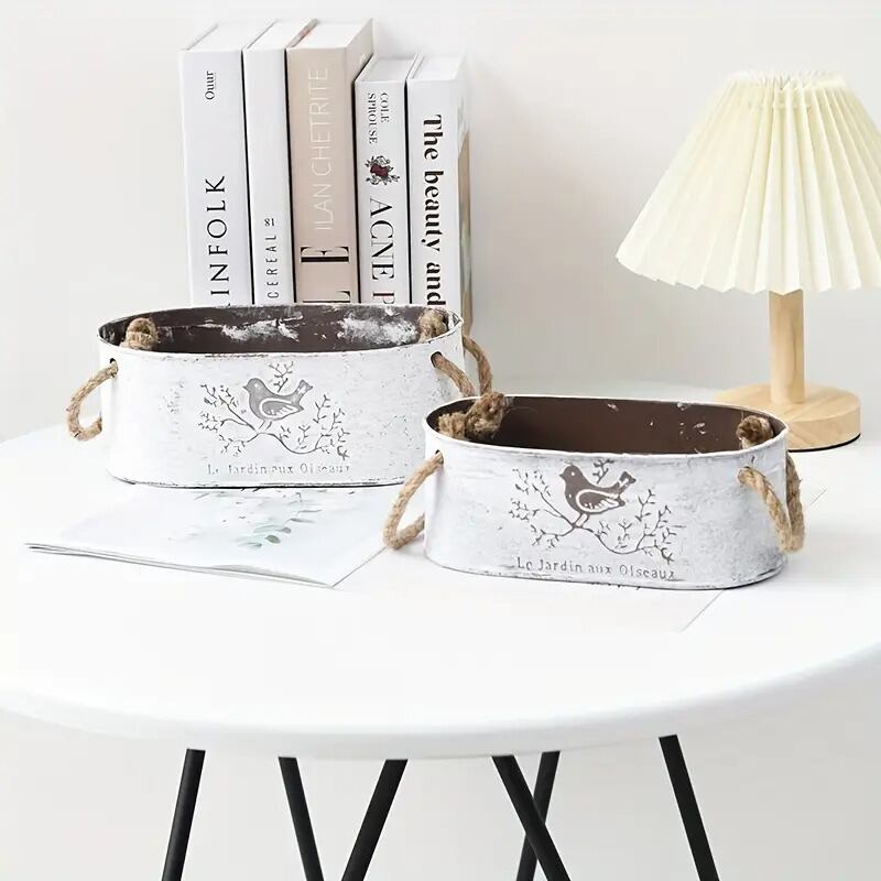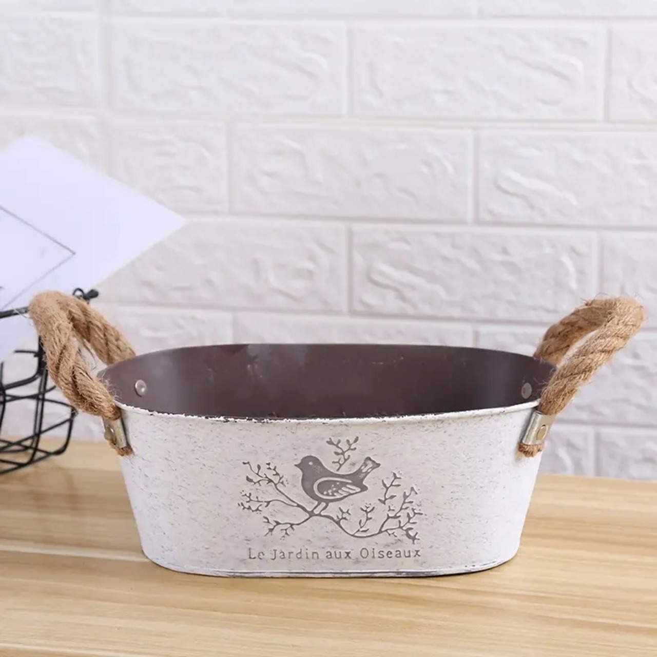 プランター 鉢 植木鉢 ヴィンテージ風 小鳥柄 フラワーポット アンティーク調 おしゃれ かわいい インテリア 北欧 金属製 取っ手付き ガーデニング 多肉植物 花 寄せ植え 屋外 庭 ガーデン 室内 リビング 玄関 ベランダ ナチュラル 可愛い 21×9cm | Calm+(カームプラス) - 北欧風ナチュラルインテリア・モダン家具専門店