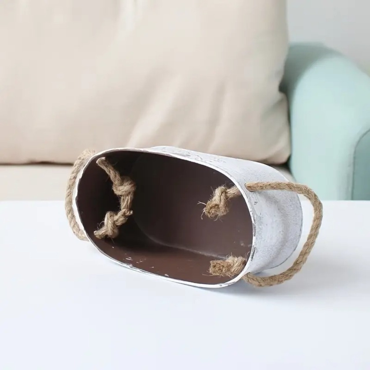 アンティーク調の金属製フラワーポットは、取っ手付きで持ち運びも簡単。