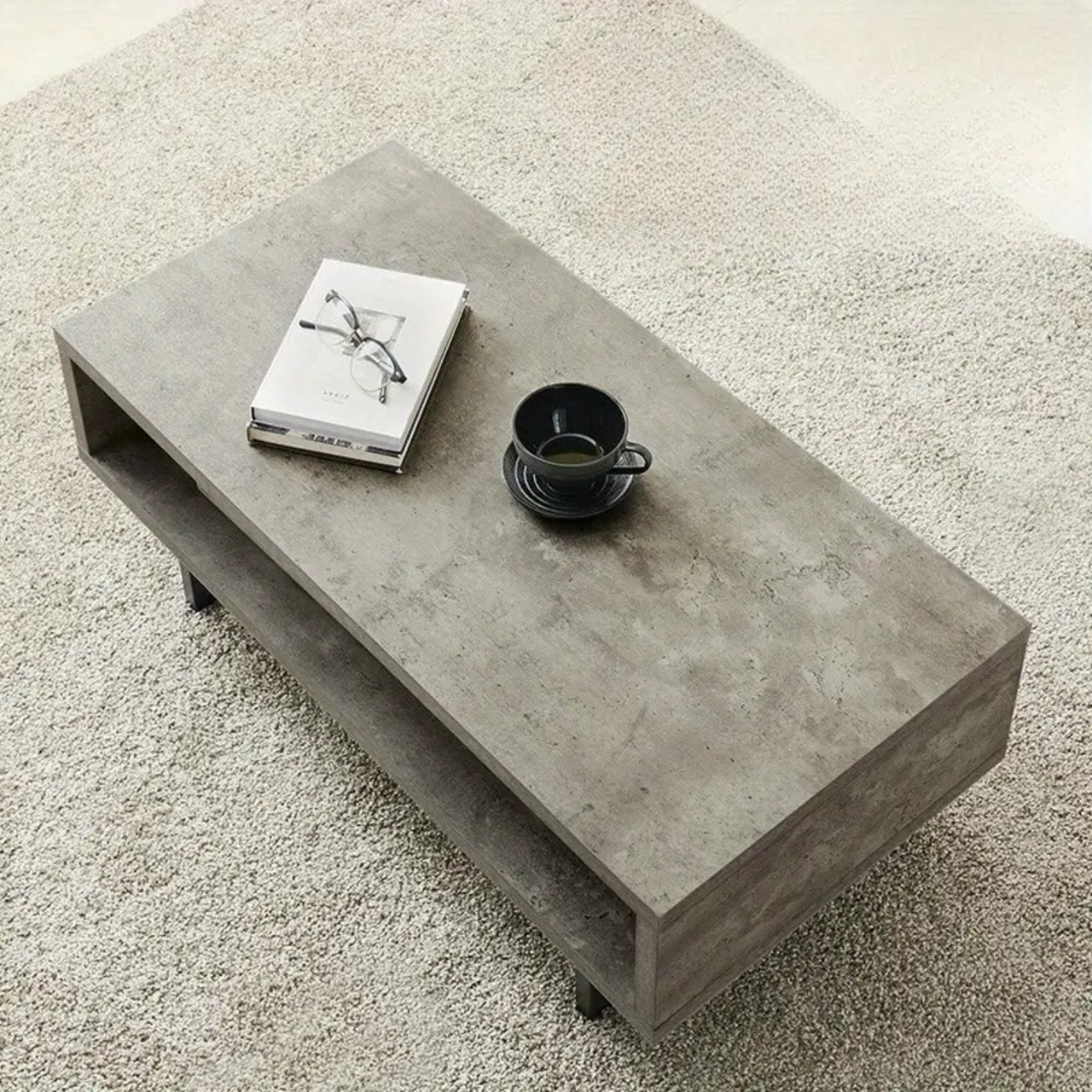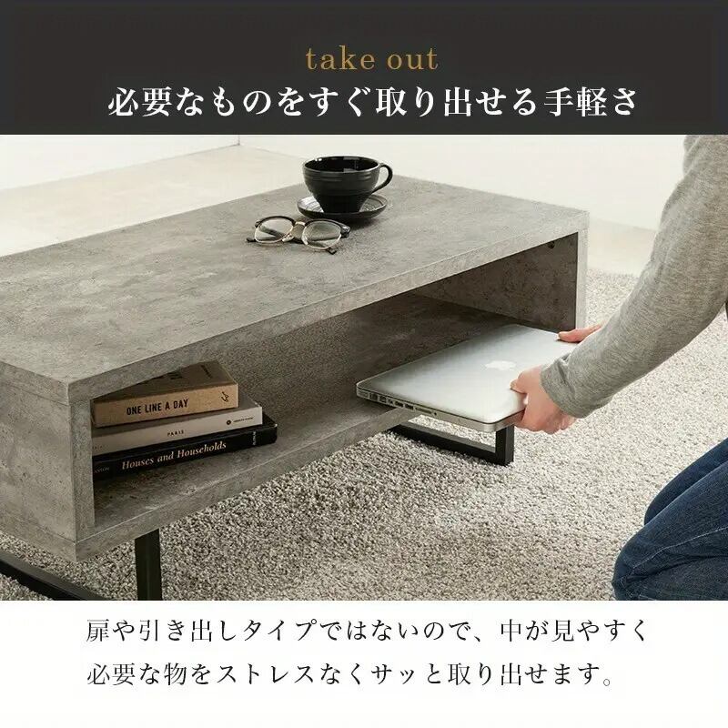 このセンターテーブルは、ストーン調のデザインが魅力的で、どんなインテリアにも自然に溶け込みます。