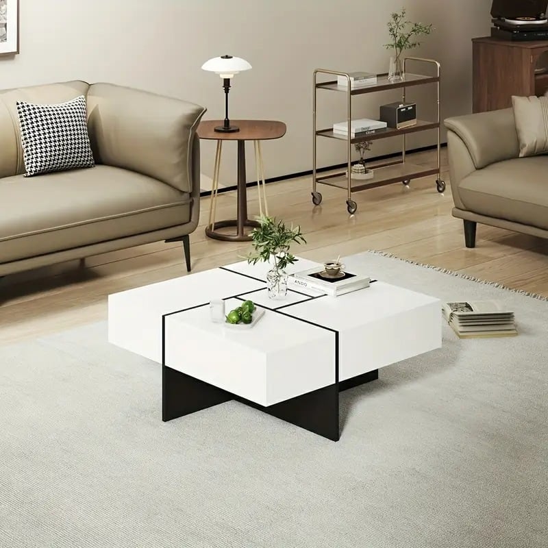 ローテーブル コーヒーテーブル センターテーブル 隠し収納 引き出し 大容量 多機能 おしゃれ かわいい インテリア 北欧 サイドテーブル 幾何学デザイン シンプル モノトーン 正方形 リビング お手入れ簡単 80×80×34.5c | Calm+(カームプラス) - 北欧風ナチュラルインテリア・モダン家具専門店