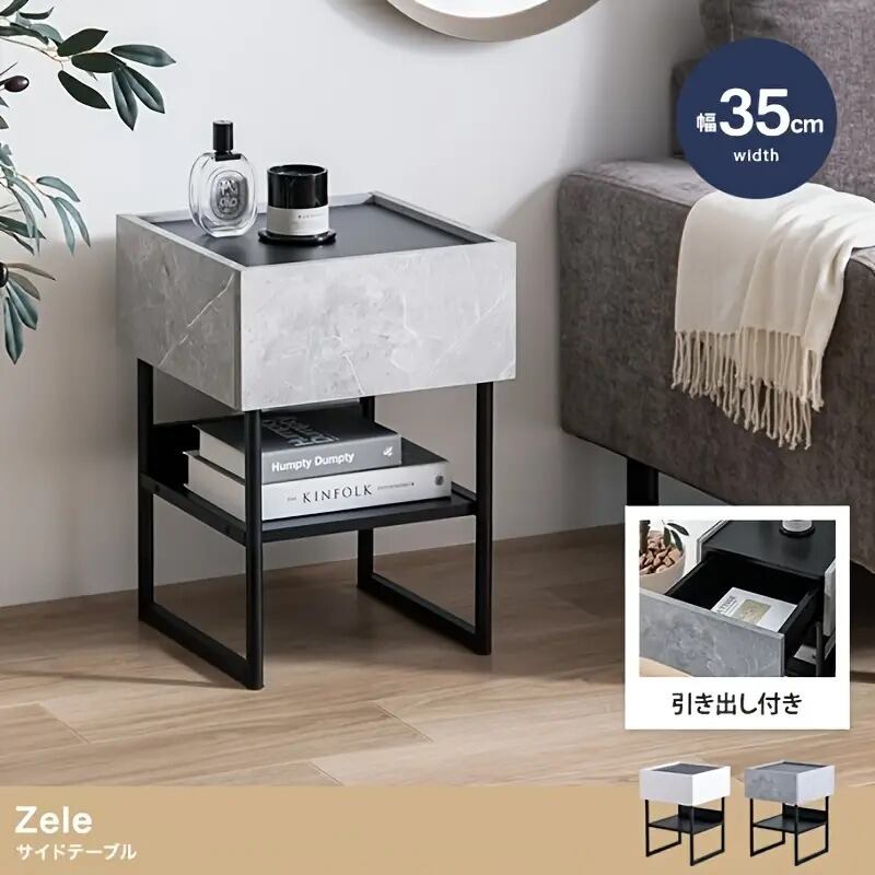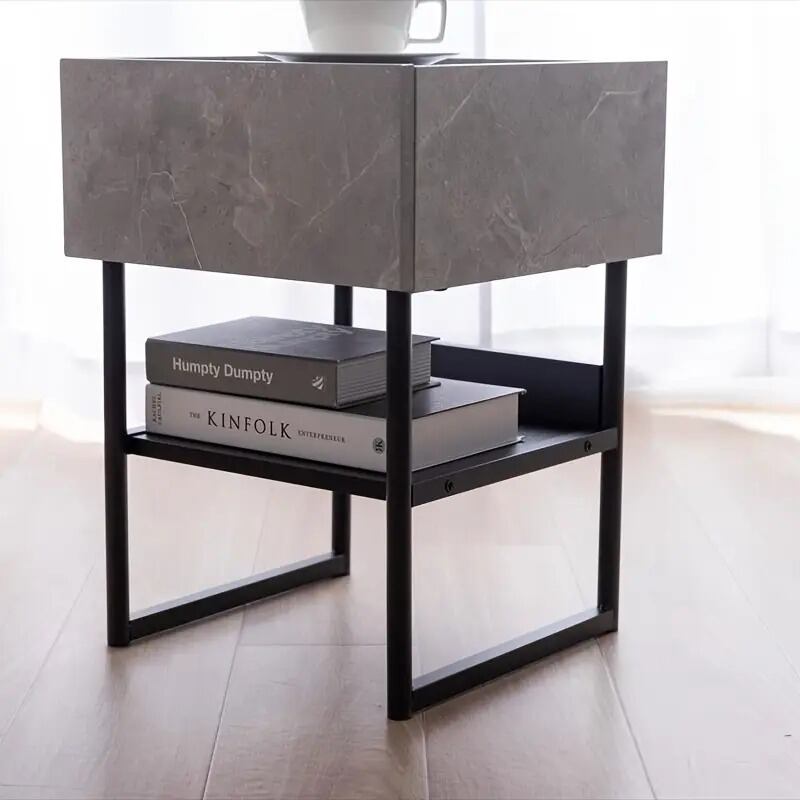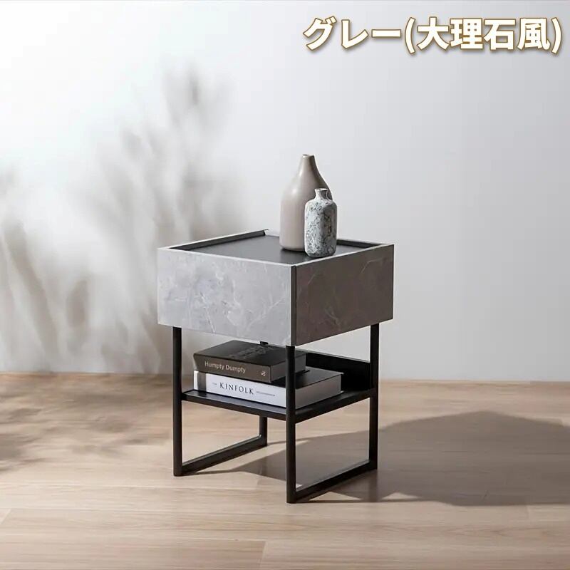 サイドテーブル ストーン調 大理石風 モノトーン シンプル 韓国 マルチテーブル 大理石模様 リビングルーム 寝室用 収納付き おしゃれ かわいい インテリア 北欧 雑貨収納 コーヒーテーブル ナイトテーブル モダン ナチュラル コンパクト ミニマル 空間活用