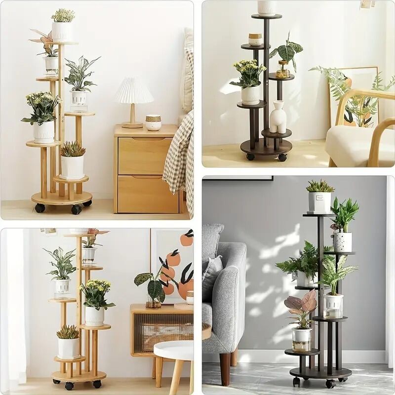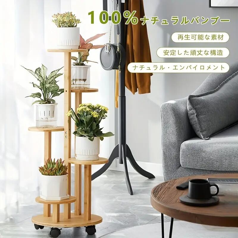 フラワースタンド プランター台 鉢置き キャスター付き バンブー 5段 おしゃれ かわいい インテリア 北欧 ナチュラル ブラウン 植物 花 室内 リビング ディスプレイ 竹製 自然素材 33×90cm | Calm+(カームプラス) - 北欧風ナチュラルインテリア・モダン家具専門店