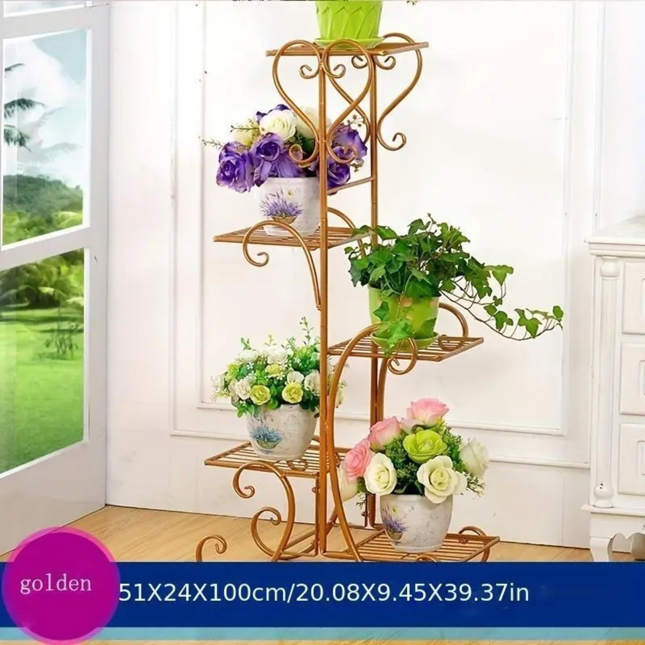 この5段のプランター台は、屋外でも室内でもその存在感を放ちます。