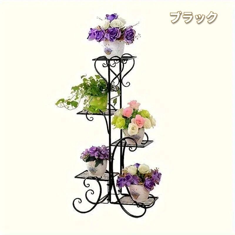 フラワースタンド プランター台 ヨーロッパ風 エレガント 5段 鉢置き おしゃれ かわいい インテリア 北欧 植物 花 屋外 庭 室内 金属製 ブラック ホワイト ゴールド 51×100×24cm | Calm+(カームプラス) - 北欧風ナチュラルインテリア・モダン家具専門店