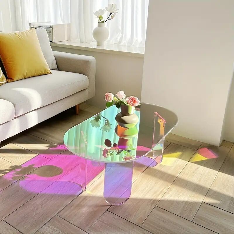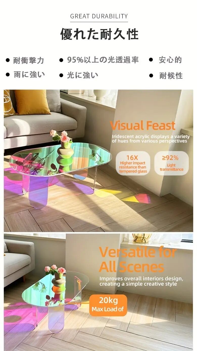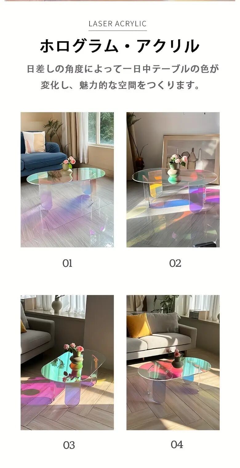 アクリル素材で作られたこのローテーブルは、リビングに高級感とモダンデザインをもたらします。