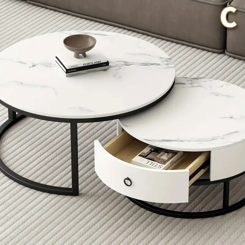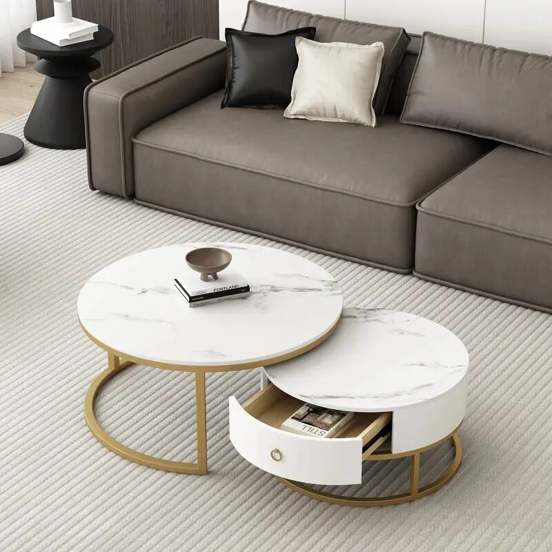 ローテーブル コーヒーテーブル ネストテーブル 大理石風 ゴールド ラグジュアリー ラウンド 丸型 ホワイト ネスティングテーブル おしゃれ かわいい インテリア 北欧 引き出し付き センターテーブル サイドテーブル ソファテーブル リビングテーブル | Calm+(カームプラス) - 北欧風ナチュラルインテリア・モダン家具専門店