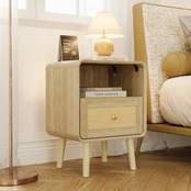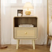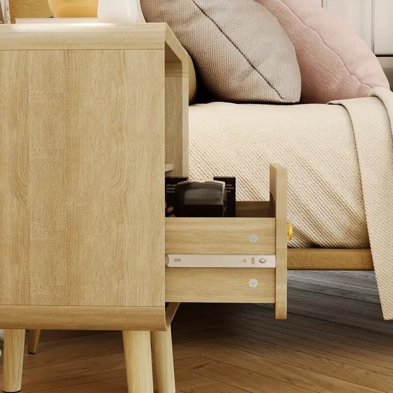 サイドテーブル ラタンウッド 引き出し付き ナチュラル 四角 スクエア ナイトテーブル ベッドサイドテーブル ソファ横テーブル ノルディックスタイル おしゃれ かわいい インテリア 北欧 北欧風 シンプルデザイン おしゃれ家具 コンパクト リビング 寝室用 | Calm+(カームプラス) - 北欧風ナチュラルインテリア・モダン家具専門店