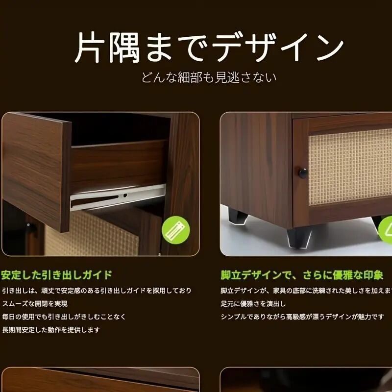 サイドテーブル ダークウッド クラシック ヴィンテージ風 ベッドサイドテーブル 編み込み収納バスケット付き フェイクウッド素材 おしゃれ かわいい インテリア 北欧 ナイトテーブル 収納付き ベッドルーム用 インテリア家具 シンプル アンティーク調 小物整理 | Calm+(カームプラス) - 北欧風ナチュラルインテリア・モダン家具専門店