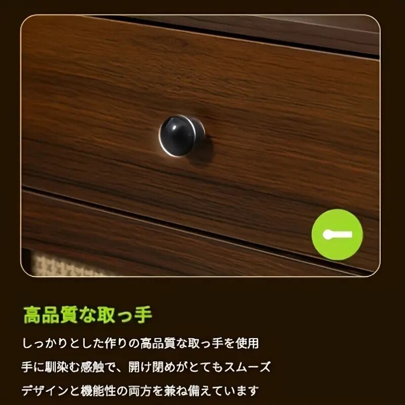 フェイクウッド素材を使用し、アンティーク調のシンプルなインテリア家具として、どんな空間にも自然に溶け込みます。