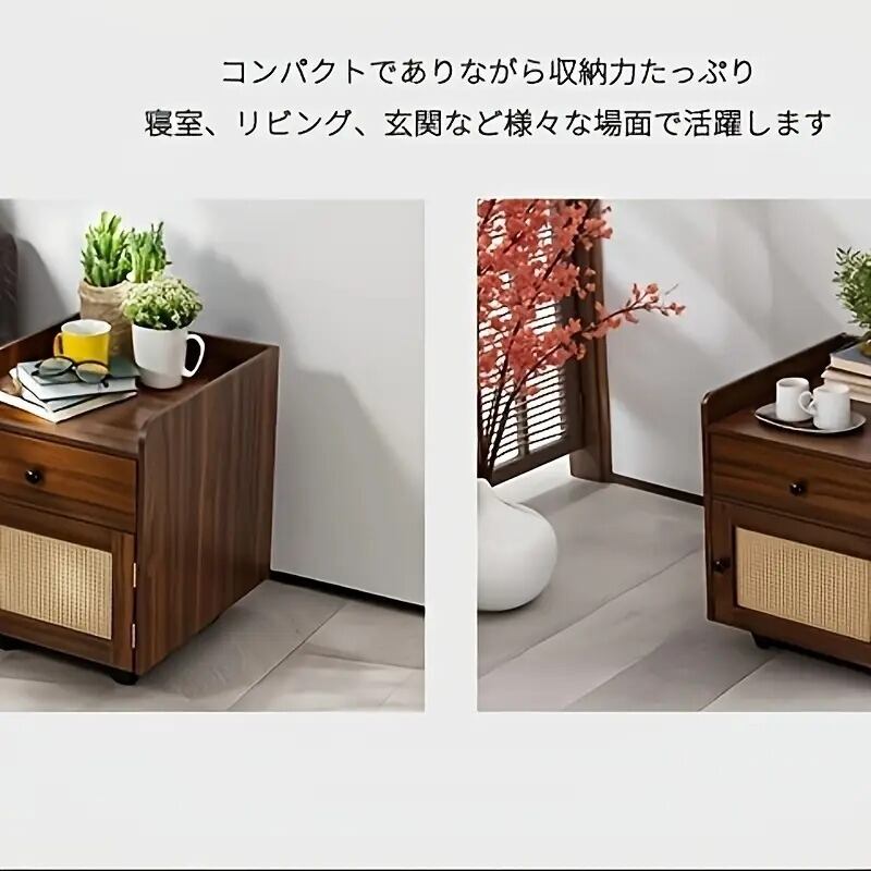 ナイトテーブルとしても活躍する、収納付きのベッドサイドテーブルです。