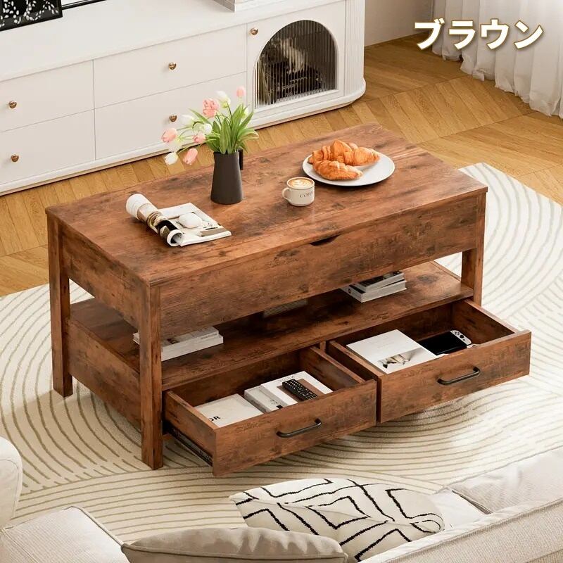 ローテーブル コーヒーテーブル ダークブラウン ウッド 昇降可能 ホワイト ブラック 木製 センターテーブル 引き出し付き 大容量収納 おしゃれ かわいい インテリア 北欧 高さ調整 リフティングテーブル リビングテーブル 作業台 一人暮らし用 ナチュラル | Calm+(カームプラス) - 北欧風ナチュラルインテリア・モダン家具専門店