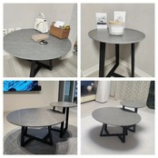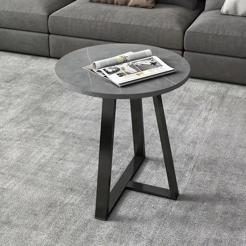 リビングに優雅なアクセントを加える、円形のセラミック風天板が魅力のサイドテーブルです。
