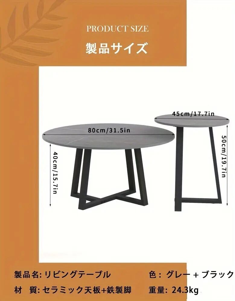 大きいテーブルは80×40cm、小さいテーブルは45×50cmと、コンパクトながらも存在感があります。