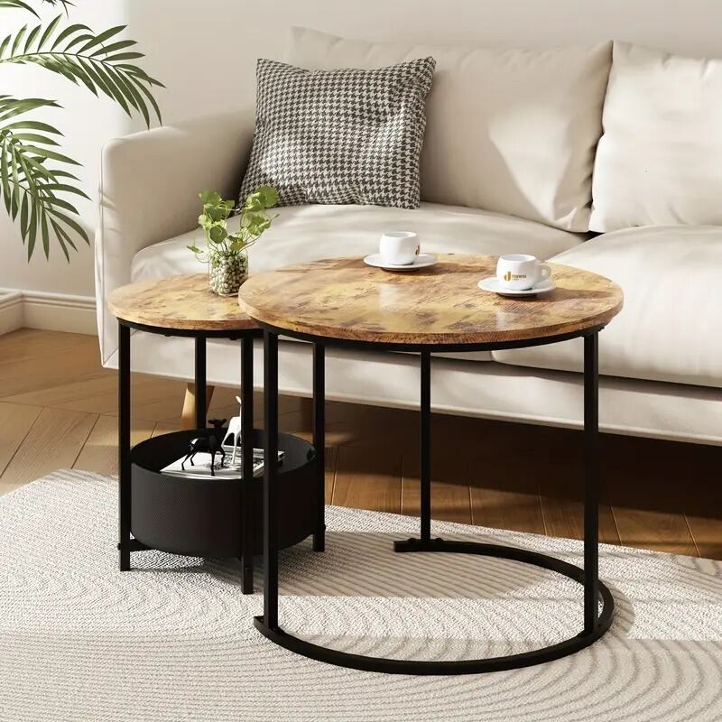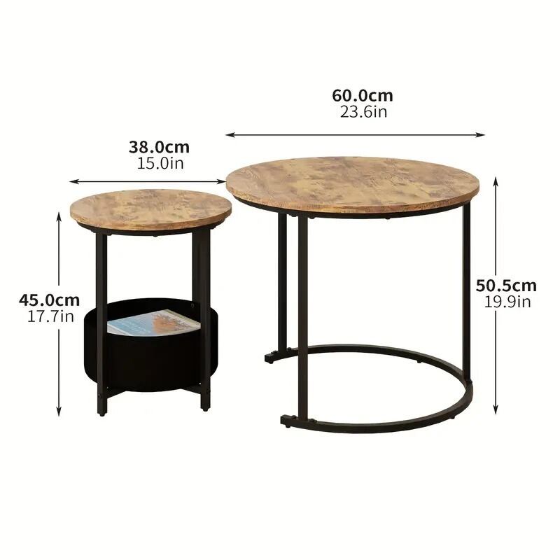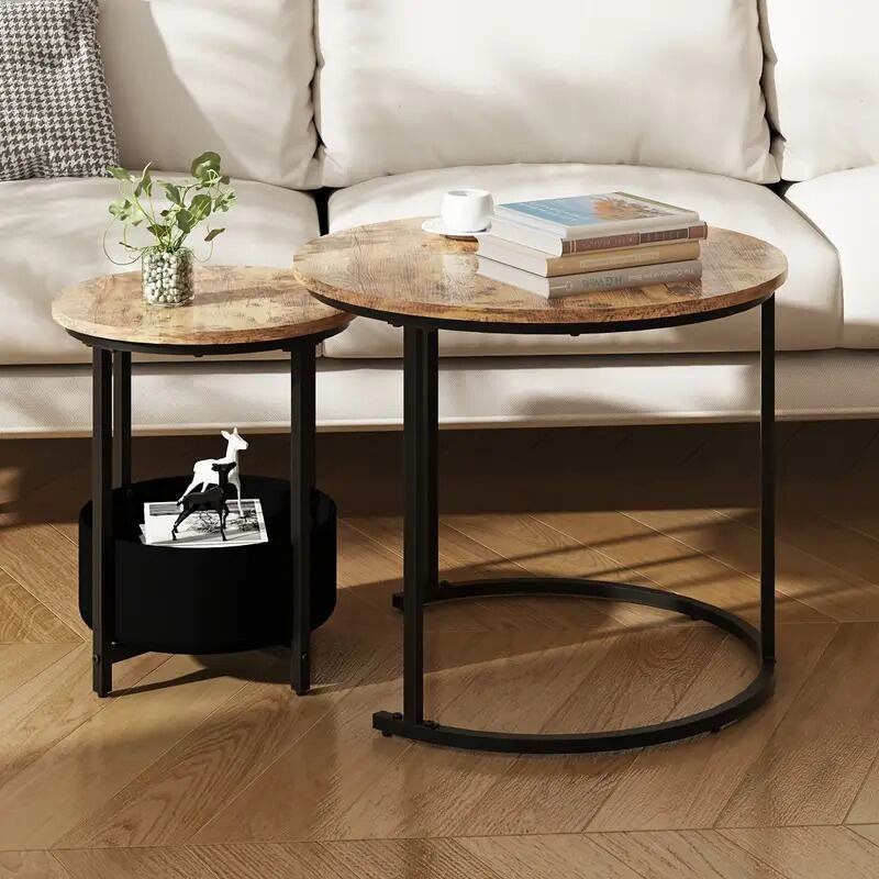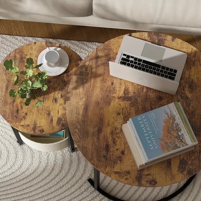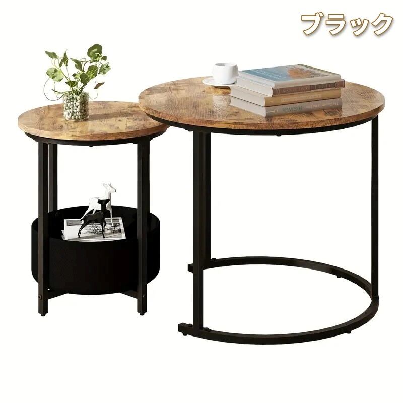 サイドテーブル 2点セット ウッド風 ネストテーブル 木目調 ラウンドテーブル ネスティング コーヒーテーブル おしゃれ かわいい インテリア 北欧 収納付き 丸型 リビング ベッドルーム ソファ横 バルコニー アパート 北欧風 ナチュラル インテリア家具 | Calm+(カームプラス) - 北欧風ナチュラルインテリア・モダン家具専門店