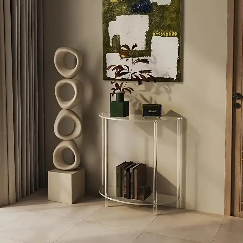 サイドテーブル 半円 アクリル 透明 ベッドサイド アクリル素材 コンパクト スリムデザイン おしゃれ かわいい インテリア 北欧 ノルディックスタイル 北欧風 モダンナチュラル 省スペース リビング 廊下 バスルーム キッチン向け インテリア家具 雑貨収納