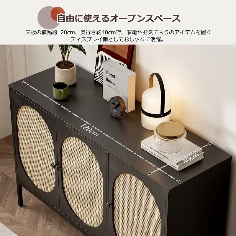 チェスト キャビネット ラック 3ドア 大容量収納 おしゃれ かわいい インテリア 北欧 ナチュラルデザイン 北欧風 リビング収納 寝室収納 食器棚 木製風 家具 アンティーク調 カフェ風 一人暮らし 天然素材風 120×80×40cm