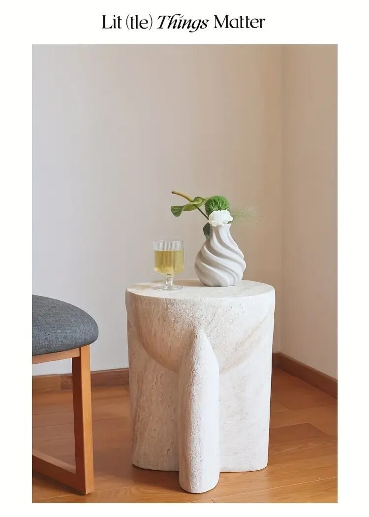 サイドテーブル ストーン調 彫刻風 半円 ホワイト クラシックスタイル 大理石風 エンドテーブル 円形 ペデスタルベース おしゃれ かわいい インテリア 北欧 カフェテーブル リビングルーム ベッドルーム カフェ風 北欧調 ナチュラルアンティーク調 | Calm+(カームプラス) - 北欧風ナチュラルインテリア・モダン家具専門店