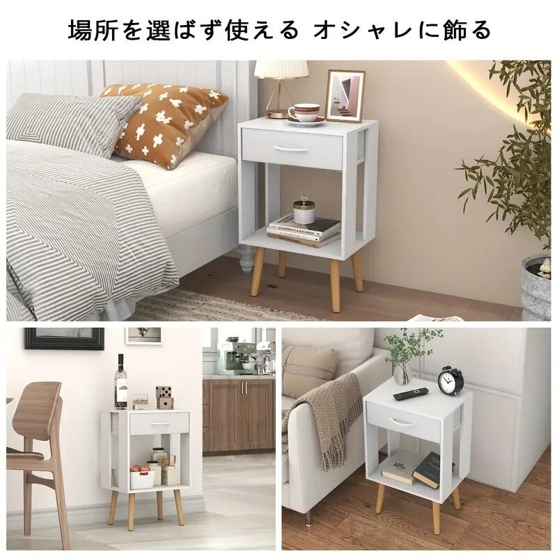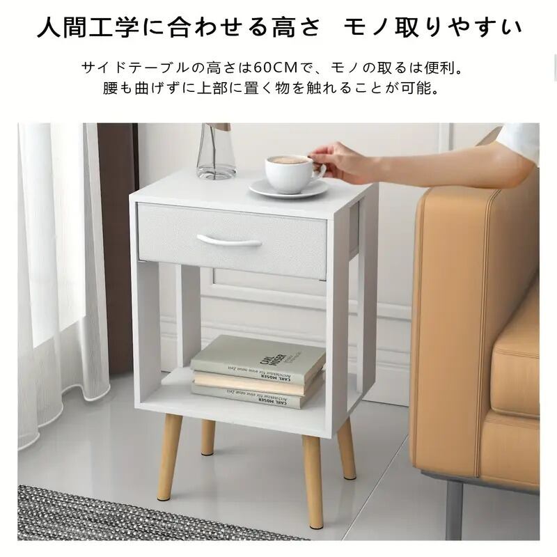 サイドテーブル 引き出し付き 木製 グレー ナチュラル 木目調 ノルディックデザイン おしゃれ かわいい インテリア 北欧 北欧風 スタイリッシュ ベッドサイドテーブル ナイトテーブル 収納棚付き コーヒーテーブル リビング ソファ横 モダン家具 小物収納